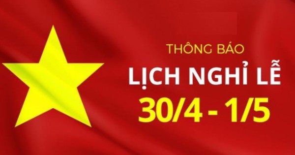 Thời gian nghỉ lễ: Từ ngày thứ tư (30/4/2025) đến hết ngày thứ năm (1/5/2025)